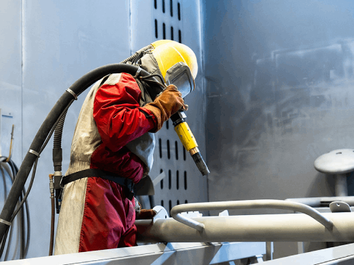 Les équipements de sablage industriel comprennent une source de pression d’air comprimé, un réservoir d’abrasif, une buse de projection, un système de contrôle de la pression et un équipement de protection individuelle pour les travailleurs.